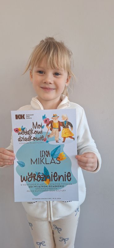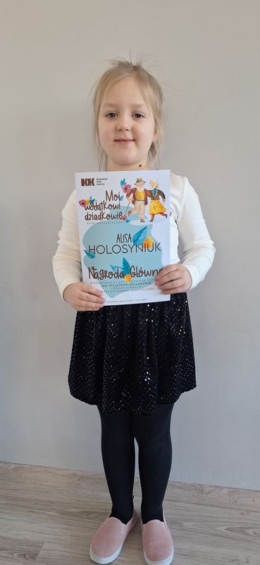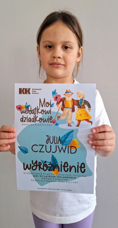 Nagroda Główna dla Alisy oraz Wyróżnienia dla Julii i Lenki w konkursie plastycznym "Moi wyjątkowi dziadkowie".