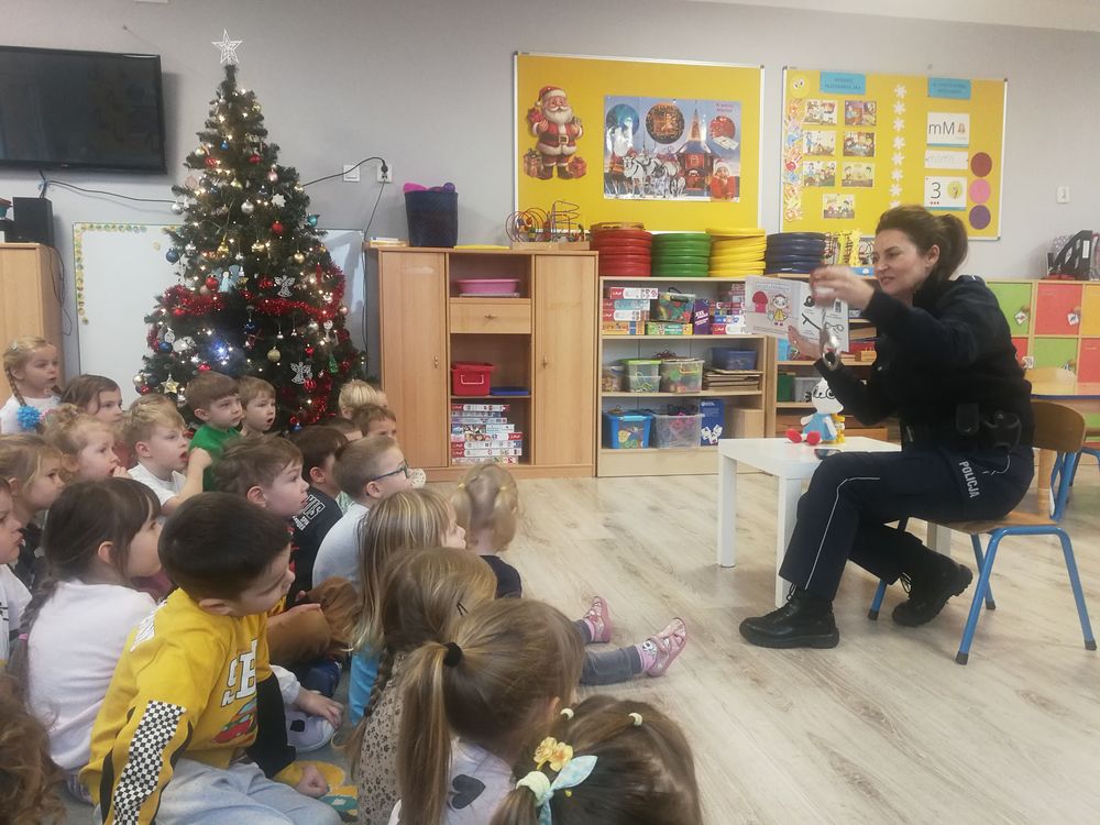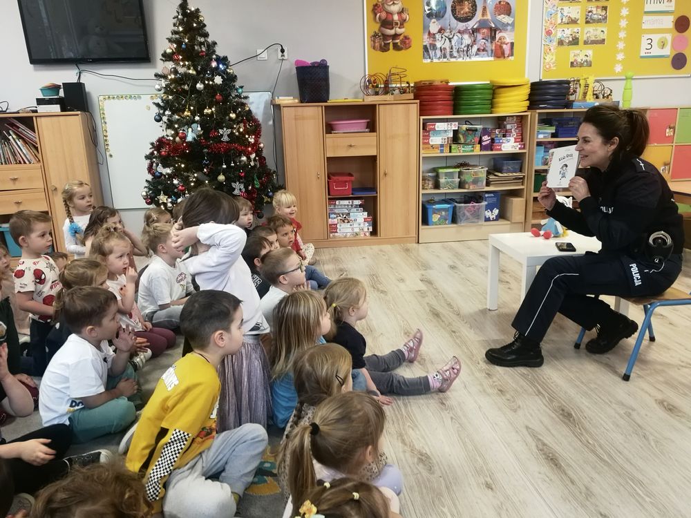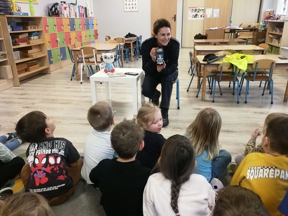 Wizyta Pani Policjantki w ramach Projektu edukacyjnego "Z Kicią Kocią maluch zmieniają się w zuchy".