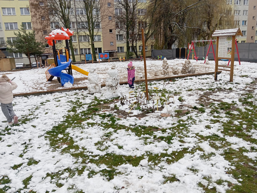 Zabawy Tuptusiów na śniegu